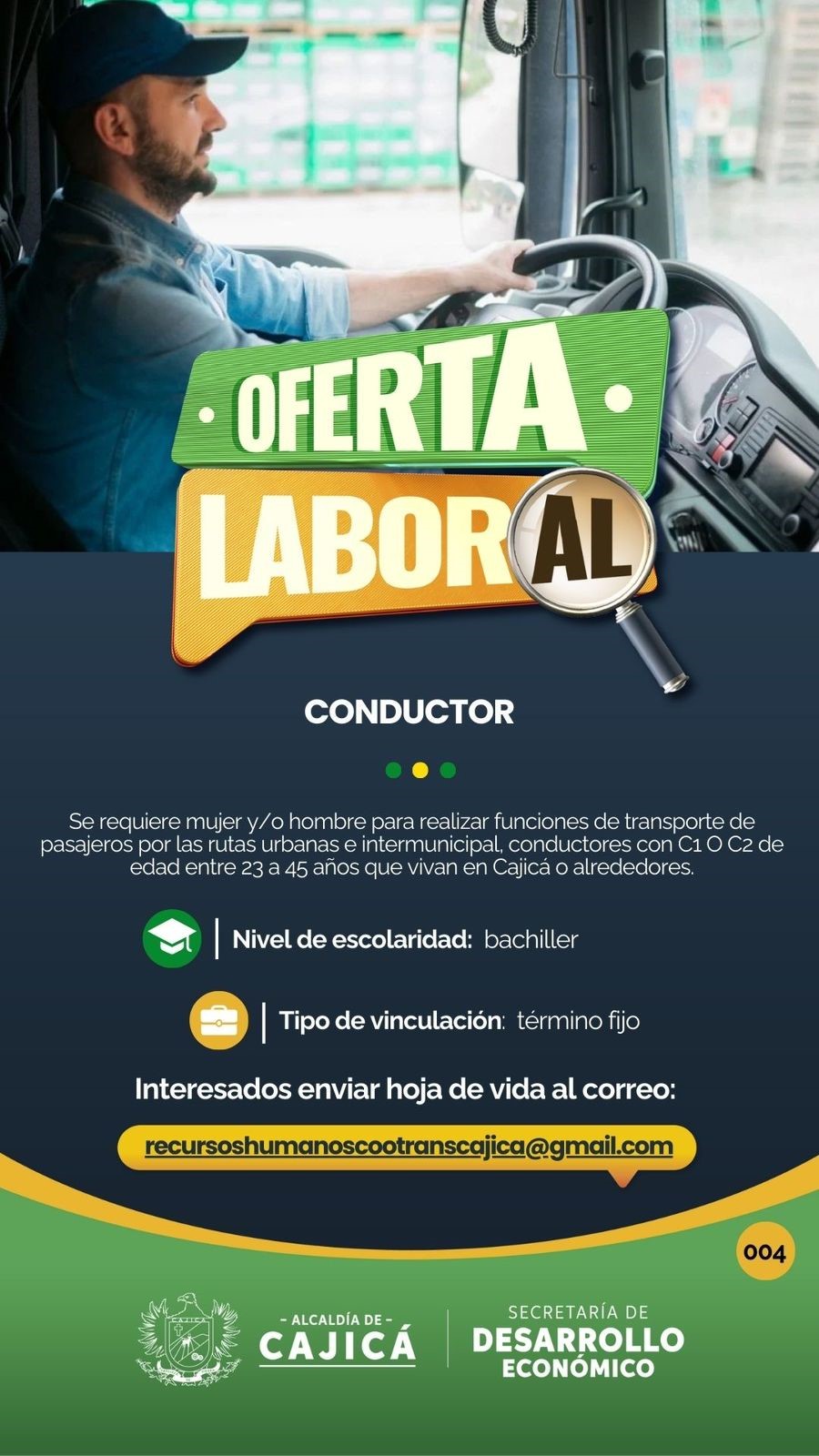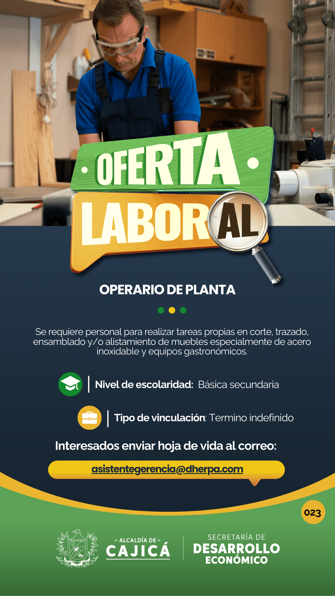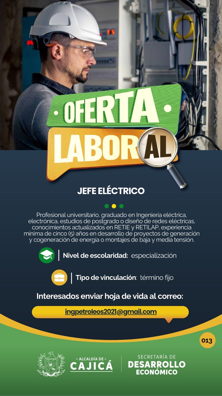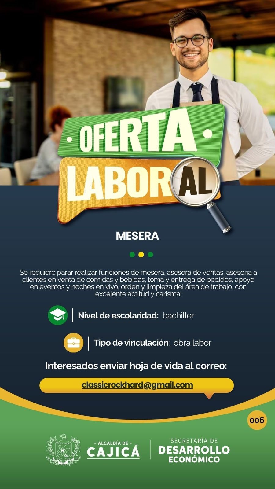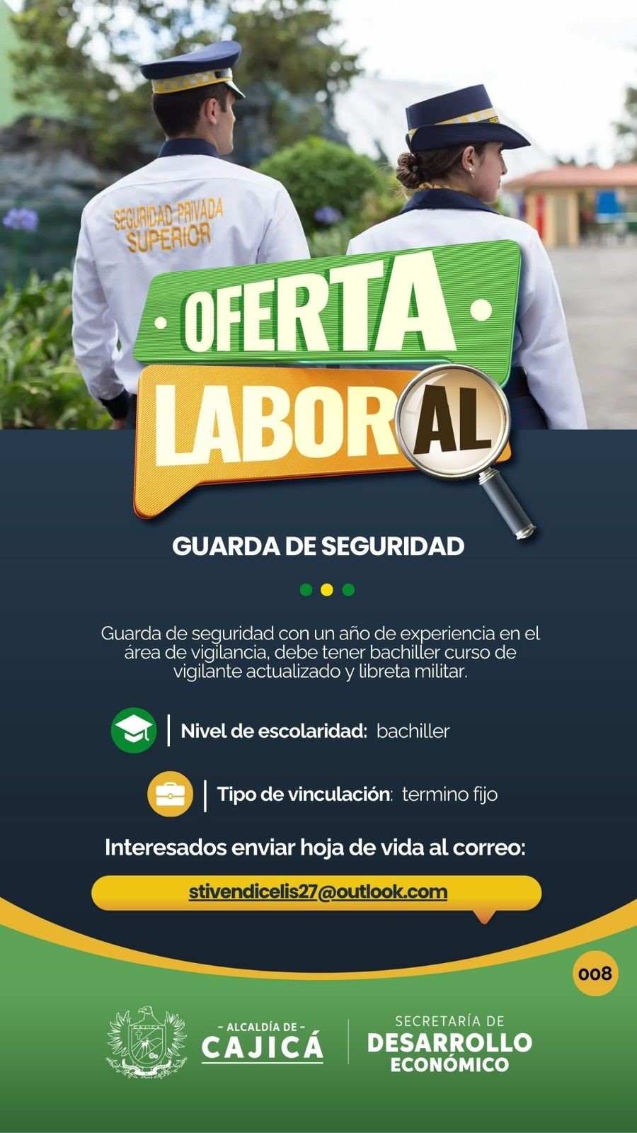 Interesados enviar hoja de vida al correo: