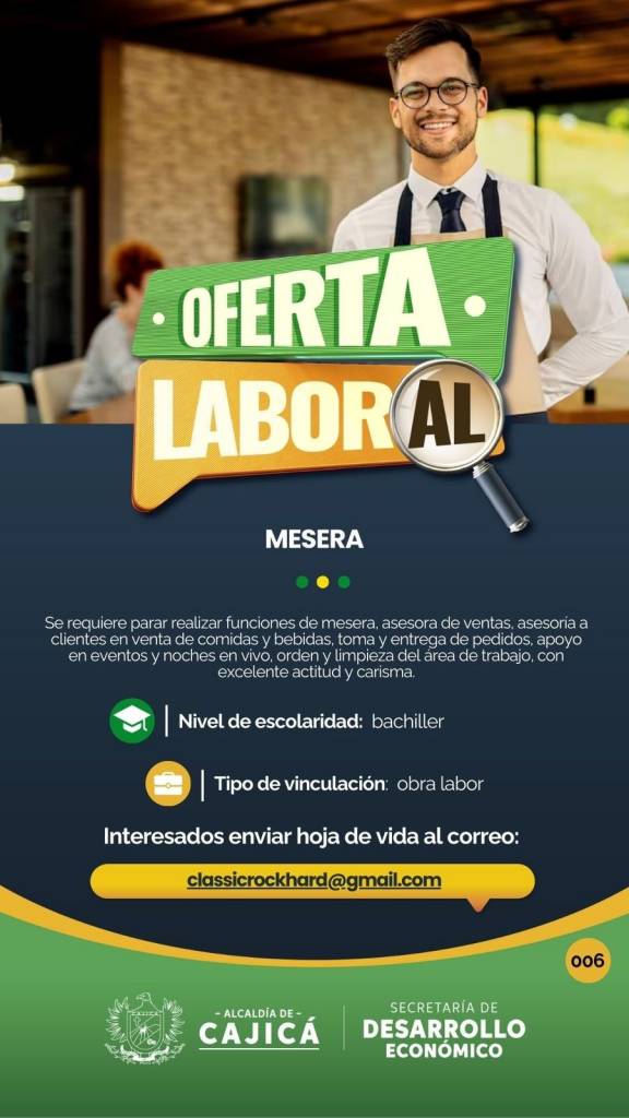 Se requiere con 6 meses de experiencia, se valorará experiencia en aseo de zonas comunes, áreas del restaurante y baños, adaptabilidad y disponibilidad para turnos de cierre.