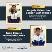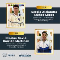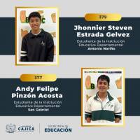 Felicitamos a los doce mejores puntajes ICFES de las Instituciones Educativas Departamentales de Cajicá. Es un honor para la Administración Municipal reconocer el talento, la dedicación y el esfuerzo de estos jóvenes que alcanzaron los puntajes más altos en las Pruebas ICFES de las seis IED del municipio. Su excelencia académica es un faro de inspiración para toda nuestra comunidad estudiantil.