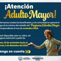 El programa del Departamento de Prosperidad Social informa que ya están habilitadas las fechas para los pagos correspondientes al mes de noviembre para los Adultos Mayores beneficiarios.