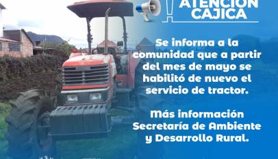 Se informa a la comunidad que se encuentra en funcionamiento el servicio de tractor en Cajicá. Para mayor información a…