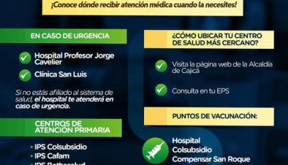 - ¿Sabe dónde acudir en caso de urgencia en Cajicá?- Urgencias: Hospital Jorge Cavelier Clínica San LuisAtención disponible, esté o no afiliado. Atención primaria: Colsubsidio Cafam Bethasalud Nordvital Vacunación: Hospital… Read More »