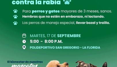 ¡No te pierdas nuestra Jornada de Vacunación contra la rabia para perros y gatos! Martes 17 de septiembre 5:00 a…