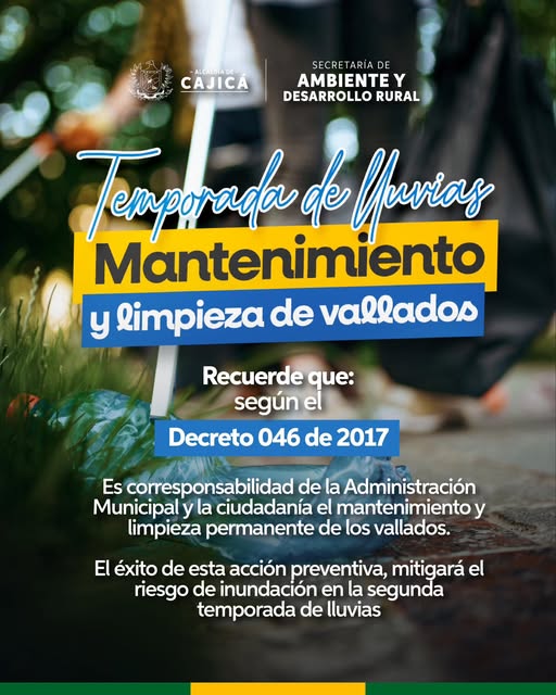 Recordamos a la comunidad la importancia de cumplir con el Decreto 046 de 2017, que establece medidas para el mantenimiento y recuperación de los cuerpos de agua superficiales (vallados) del municipio.