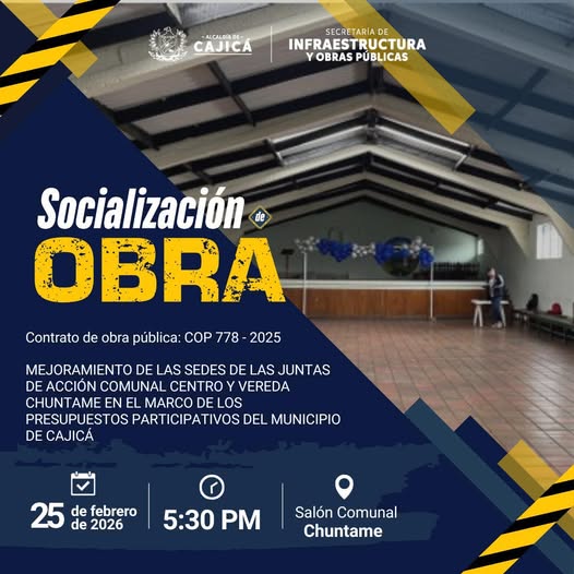 La Administración Municipal invita a la comunidad a participar en la jornada de socialización del proyecto de mejoramiento de las sedes de las Juntas de Acción Comunal del Centro y Chuntame.