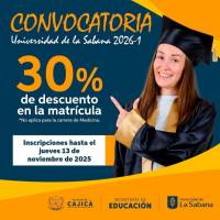 La Secretaría de Educación, a través de la Dirección de Educación Continua, informa a la comunidad cajiqueña que la convocatoria 2026-1 con la Universidad de La Sabana ya está abierta, ofreciendo una oportunidad especial para quienes inician su camino profesional.